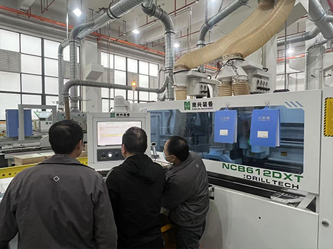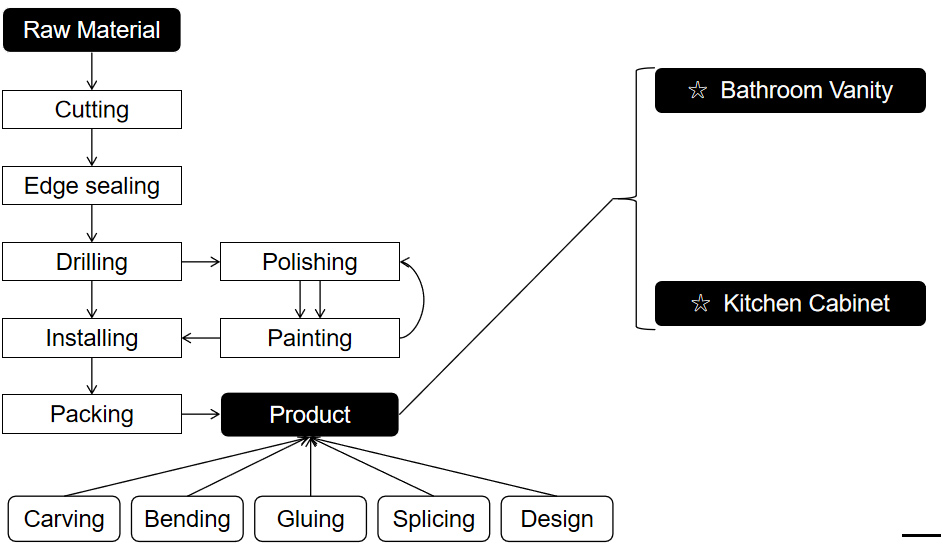 We have more than 15 sets of professional equipment, mainly including cutting machines, edge banding machines, hydraulic presses, grinding machines, and processing center machine. Also equipped with a professional paint room, warehouse.